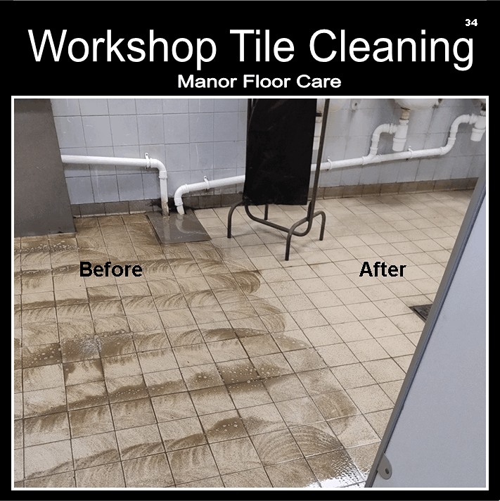 At Manor Floor Care, we used a heavy duty degreaser alongside a rotary machine equipped with the appropriate pads, to lift the grease and oil from the tiles and grout.